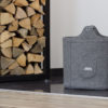 Hellgrauer Holzkorb mit praktischem Handgriff aus Aluminium